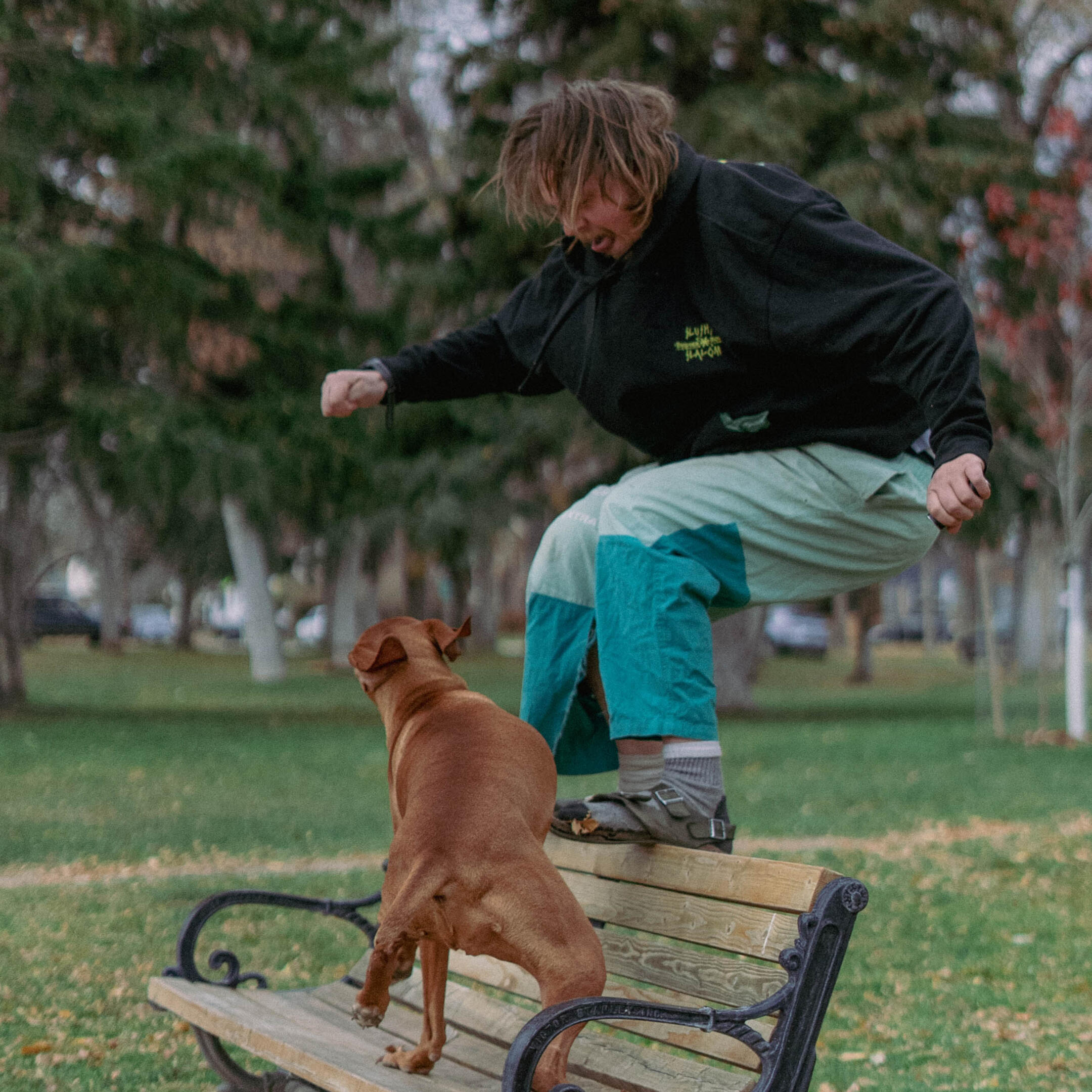 He was blowing leaves, pretty sure he invented splitboards. His name is Jay. He is now very high on the make a video list.